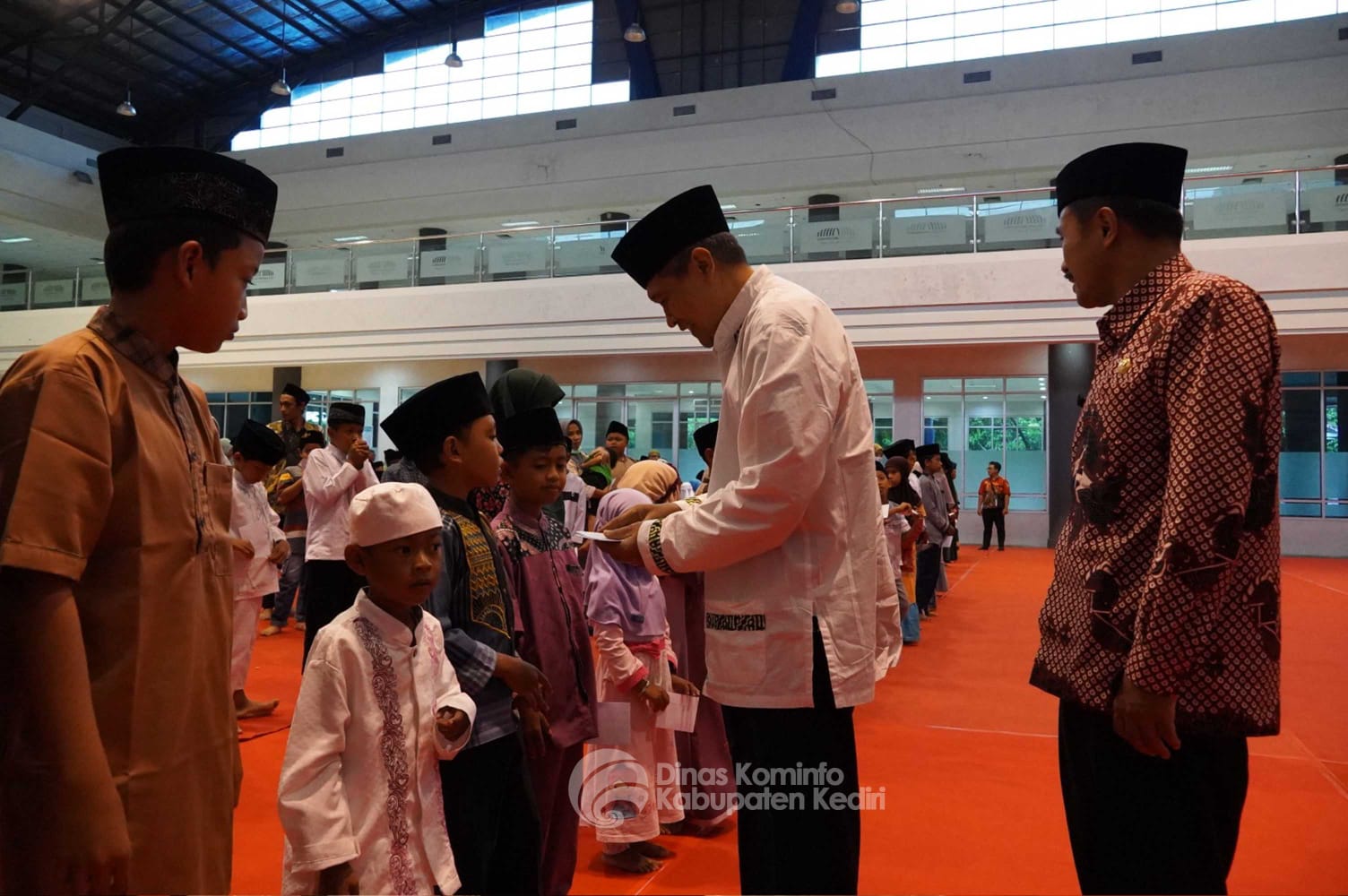 Gardapublik.com//KEDIRI. Sebanyak 1.560 anak yatim, piatu dan yatim piatu di Kabupaten Kediri mendapatkan santunan dari Baznas Kabupaten Kediri dan para donatur. Kegiatan ini diselenggarakan di Convention Hall Simpang Lima Gumul, Kecamatan Ngasem, Rabu (30/3).
