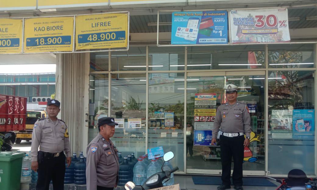 Polsek Gunungjati Polres Ciko–, Anggota Polsek Gunungjati melaksanakan himbauan kepada karyawan minimarket melalui giat KRYD, guna mengantisipasi tindak kejahatan terhadap minimarket, Minggu (30/07/2023) siang