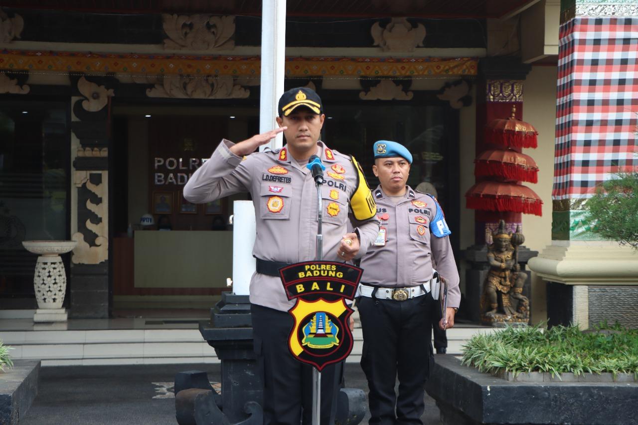 Kepala Kepolisian Resor Badung AKBP Leo Dedy Defretes, SIK, SH, MH, selaku Irup dalam Upacara Kenaikan Pangkat Personel Polres Badung dan Polsek Jajaran, pada hari Senin, 2 Januari 2023 Pukul 08.00 WITA di lapangan Apel Mapolres jalan Kebo no 1, Mengwi, Kabupaten Badung.