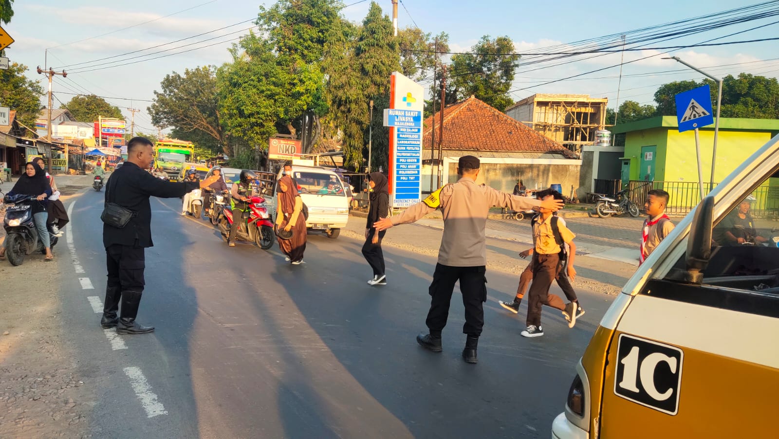 Majalengka – Polsek Kadipaten Polres Majalengka Polda Jabar melaksanakan kegiatan pengaturan lalu lintas (gatur) pagi di depan SMPN 1 Kadipaten pada hari ini. Kegiatan ini dipimpin oleh Aipda Bachtiar Dwi Atmojo dan bertujuan untuk memberikan kenyamanan serta keselamatan bagi para penyebrang jalan, terutama siswa-siswi yang bersekolah di SMPN 1 Kadipaten. Lokasi depan sekolah seringkali menjadi titik rawan kecelakaan, sehingga pengaturan lalu lintas ini sangat diperlukan. Kamis (18/07/2024).
