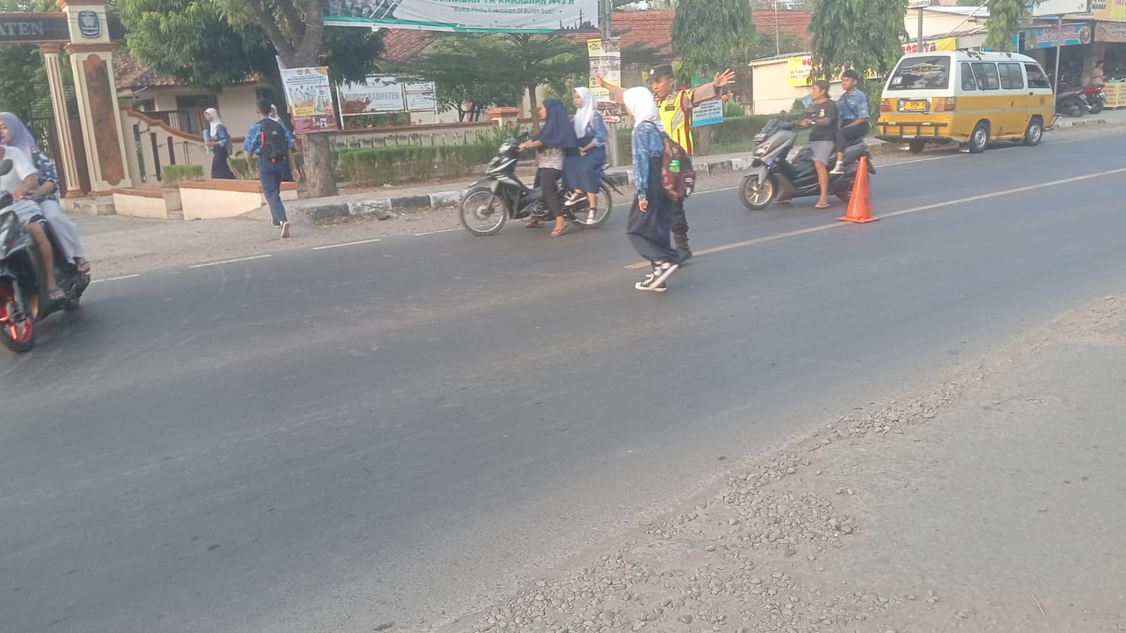 Kadipaten – Personel Polsek Kadipaten Polres Majalengka Polda Jabar, Aipda Mulani, melaksanakan kegiatan pengaturan lalu lintas pagi (gatur pagi) di sekitar SMPN 1 Kadipaten. Kegiatan ini bertujuan untuk memberikan rasa aman dan nyaman kepada para siswa serta pejalan kaki yang menyeberang jalan menuju sekolah. Kamis (30/05/2024).