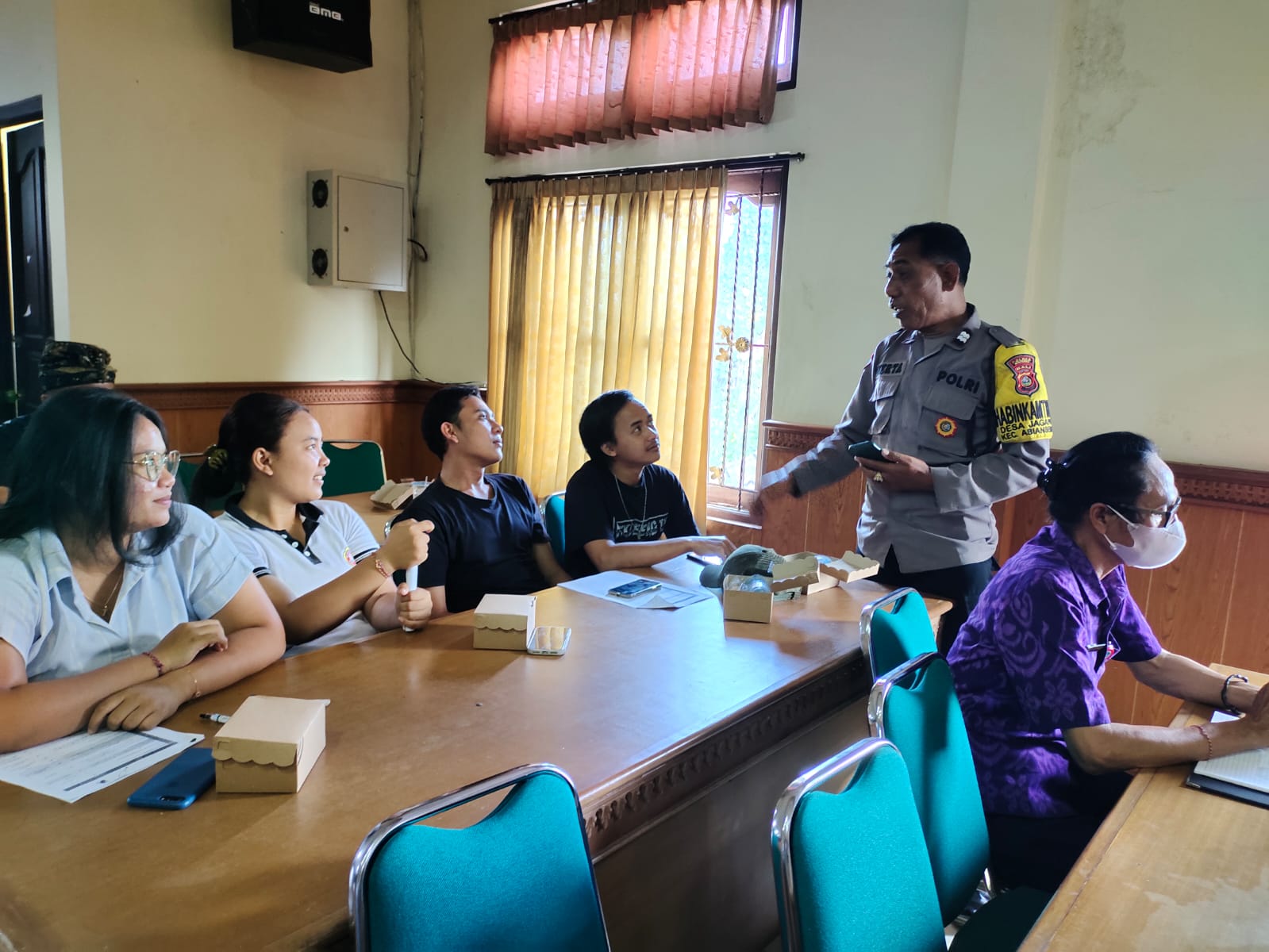 Bhabinkamtibmas Desa Jagapati Aiptu I Nyoman Mertayasa pada hari Selasa, tanggal 27 Juni 2023, pukul 13.00 WITA, melaksanakan Sosialisasi terkait Pencegahan Tindak Pidana Perdagangan Orang (TPPO) di Kantor Perbekel Desa Jagapati, Kecamatan Abiansmal, Kabupaten Badung, Bali.