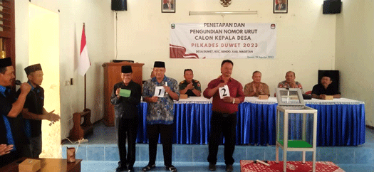 Dari hasil pengundian nomor urut ditetapkan bakal calon Kades Desa Duwet sebanyak 3 orang.