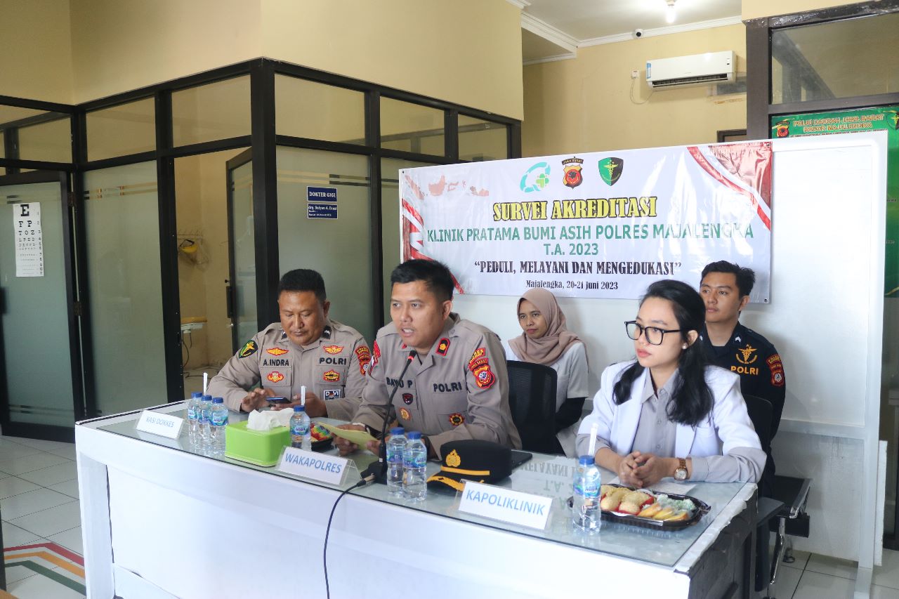 Kegiatan survei akreditasi ini dilakukan dengan melakukan telusur dokumen akreditasi serta telusur Lapangan dengan melihat Tata Graha klinik Pratama Bumi Asih Polres Majalengka.