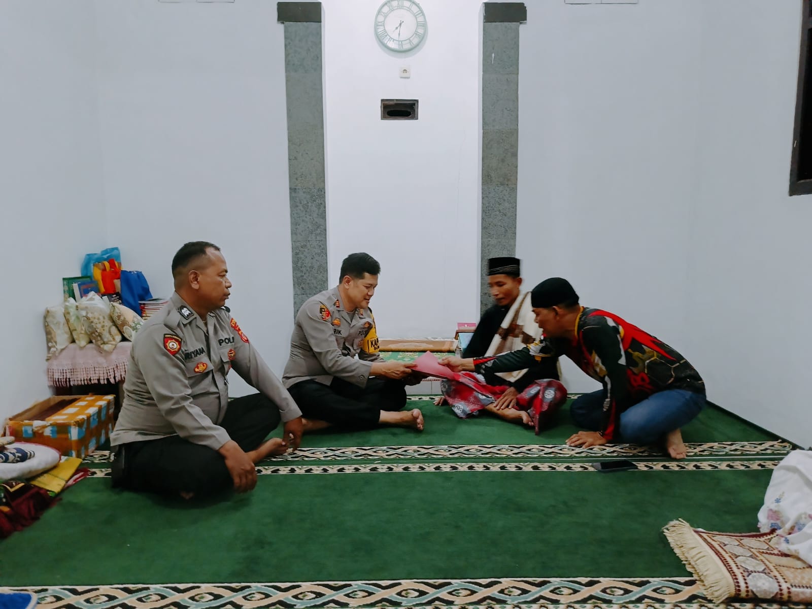 Sesuai arahan dari Kapolres Majalengka Polda Jabar AKBP Indra Novianto,S.I.K.,M.Si.,CPHR.,melalui Kapolsek Sukahaji Polres Majalengka AKP Erik Riskandar yang memimpin kegiatan tersebut bertemu langsung dengan Imam Mushola Al Affandi Bapak Ustadz Ade Muhajir dan Para Jemaah Mushola Al Affandi untuk menyalurkan bantuan Untuk keperluan kegiatan para jemaah berupa uang kepada Imam Mushola Al Affandi.
