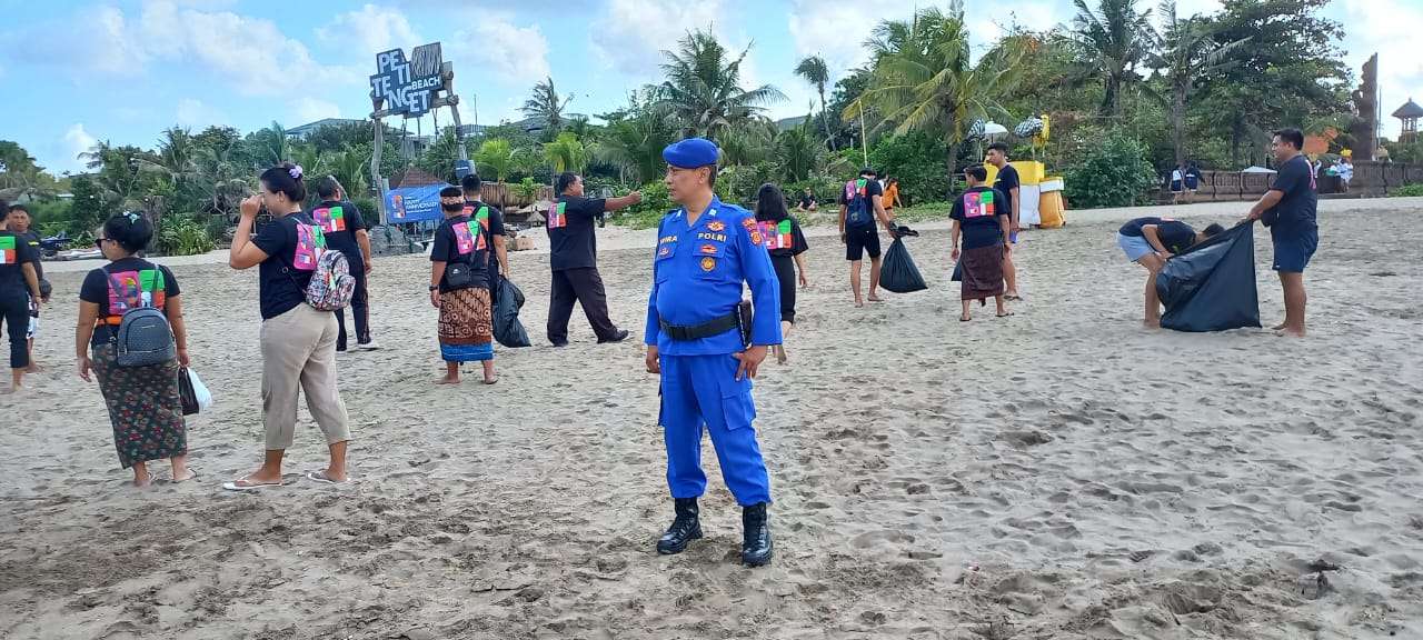 “Pagi ini puluhan karyawan Hotel Liberta Batubelig melaksanakan kegiatan bersih-bersih di kawasan wisata pantai Petitenget, kami satuan polair Polres Badung melakukan pengamanan kegiatan tersebut untuk menghindari hal-hal yang tidak diinginkan.” Ungkap Aiptu I Gede Wiranata bersama Aipda I Gst Ngurah Blambangan.