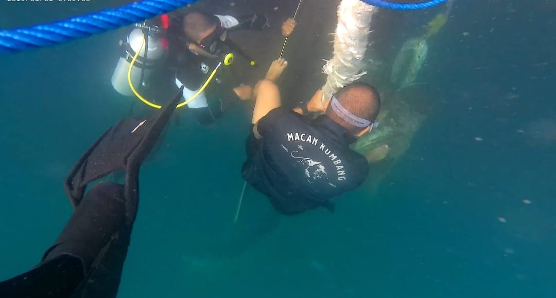 Meski harus menghadapi arus bawah laut yang cukup kuat serta pandangan yang terbatas, tim selam berhasil melepaskan tali yang melilit bagian propeler kapal.