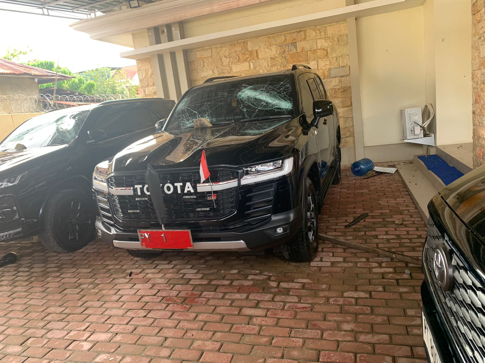 “Pengrusakan mobil dinas Gubernur dilakukan oleh massa yang melakukan aksi penolakan pemindahan tahanan,” jelasnya.