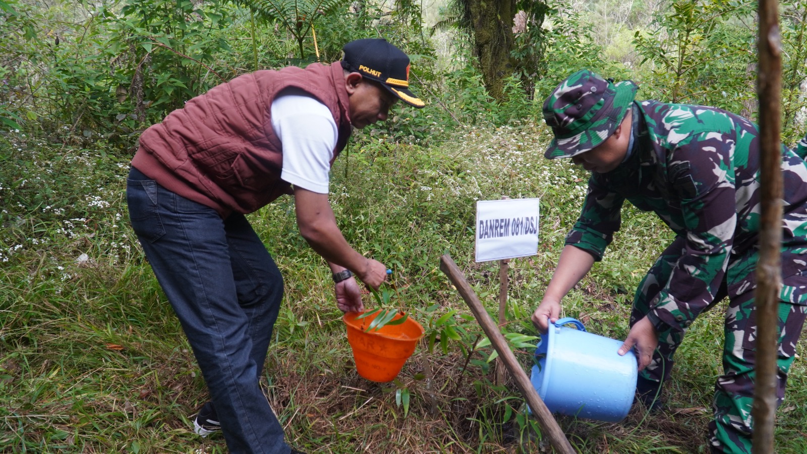 MAGETAN, BUSERJATIM.COM GROUP- Bersama puluhan anggotanya, Danrem 081/DSJ Kolonel Inf Rama Pratama melakukan penghijauan dengan menanam berbagai tanaman produktif di kawasan Gunung Lawu, Magetan, Sabtu (3/8/2024). Tak hanya dengan menanam bibit pohon, penghijauan yang dilakukan juga menggunakan sistem seedball.