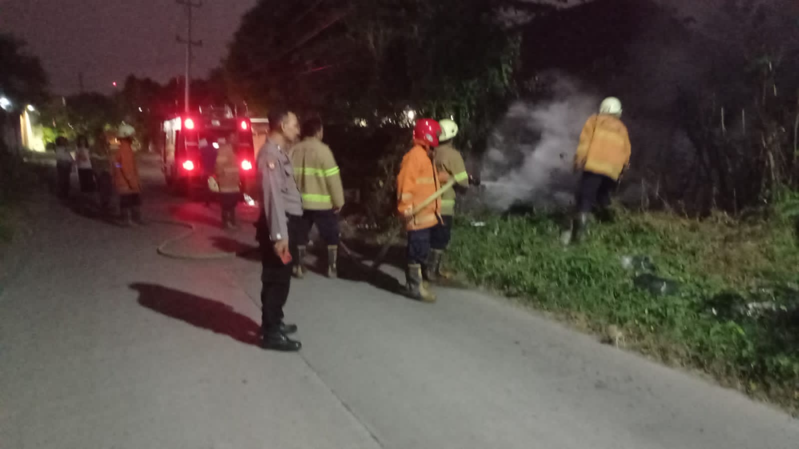 selanjutnya satu Unit Mobil Damkar mendatangi lokasi terjadinya kobaran api tersebut pada sekira Pkl. 05.10 wib dan kobaran api dapat dipadamkan pada sekira 05.30 wib.