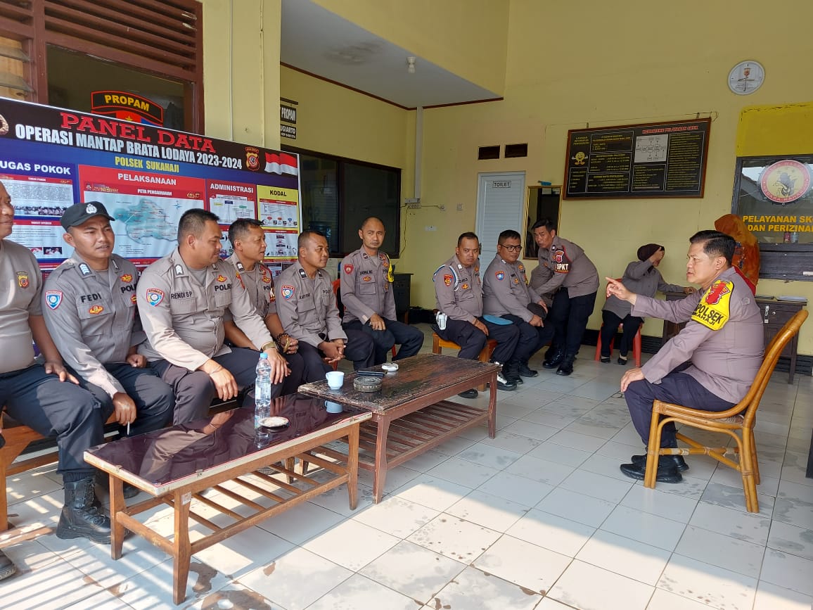 “Dalam setiap pelaksanaan tugas diharapkan anggota agar selalu memaksimalkan kinerja dalam memberikan pelayanan kepada masyarakat, serta kompak dan jangan mudah terpengaruh dengan hal-hal yang bisa memecah belah apalagi merugikan institusi Polri, hindari pelanggaran sekecil apapun,” Ujar Kapolsek Sukahaji AKP Erik Riskandar.