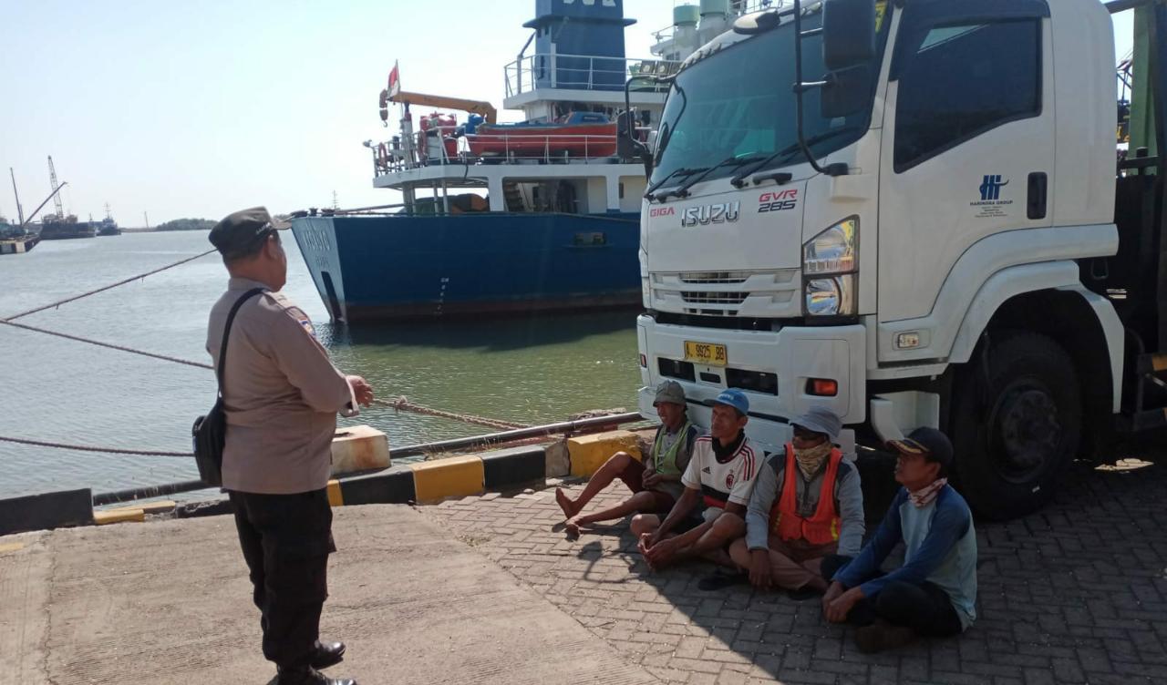 Polsek KPC Polres Ciko, Anggota Binmas Aiptu Dastam melaksanakan Edukasi dan Himbauan Tentang TPPO Kpd Para Pekerja bongkar muat di Kade Pelita Kawasan Pelabuhan Cirebon. Minggu (18/08/2023 ).