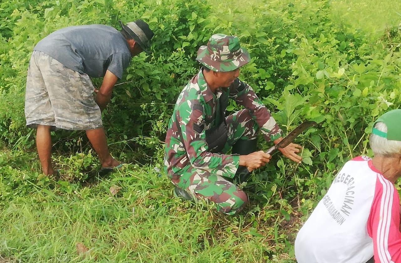 MADIUN, BUSERJATIM.COM GROUP – Anggota Koramil Tipe B 0803/03 Balerejo, Serka Agung, bersama masyarakat setempat melaksanakan kegiatan karya bhakti berupa pembersihan di sepanjang pinggir jalan raya dan saluran irigasi di wilayah Kecamatan Balerejo, Kabupaten Madiun, Minggu (19/1). Kegiatan ini dilakukan sebagai bentuk kepedulian terhadap kebersihan lingkungan sekaligus mendukung kelancaran fungsi saluran irigasi yang sangat vital untuk kebutuhan pertanian warga.