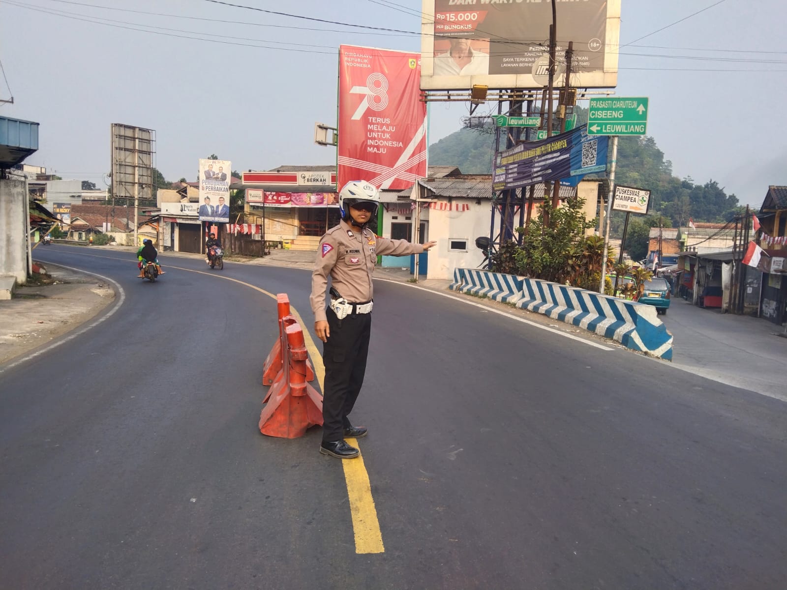 Anggota Polsek Ciampea Polres Bogor Laksanakan Kegiatan Pengaturan lalulintas
