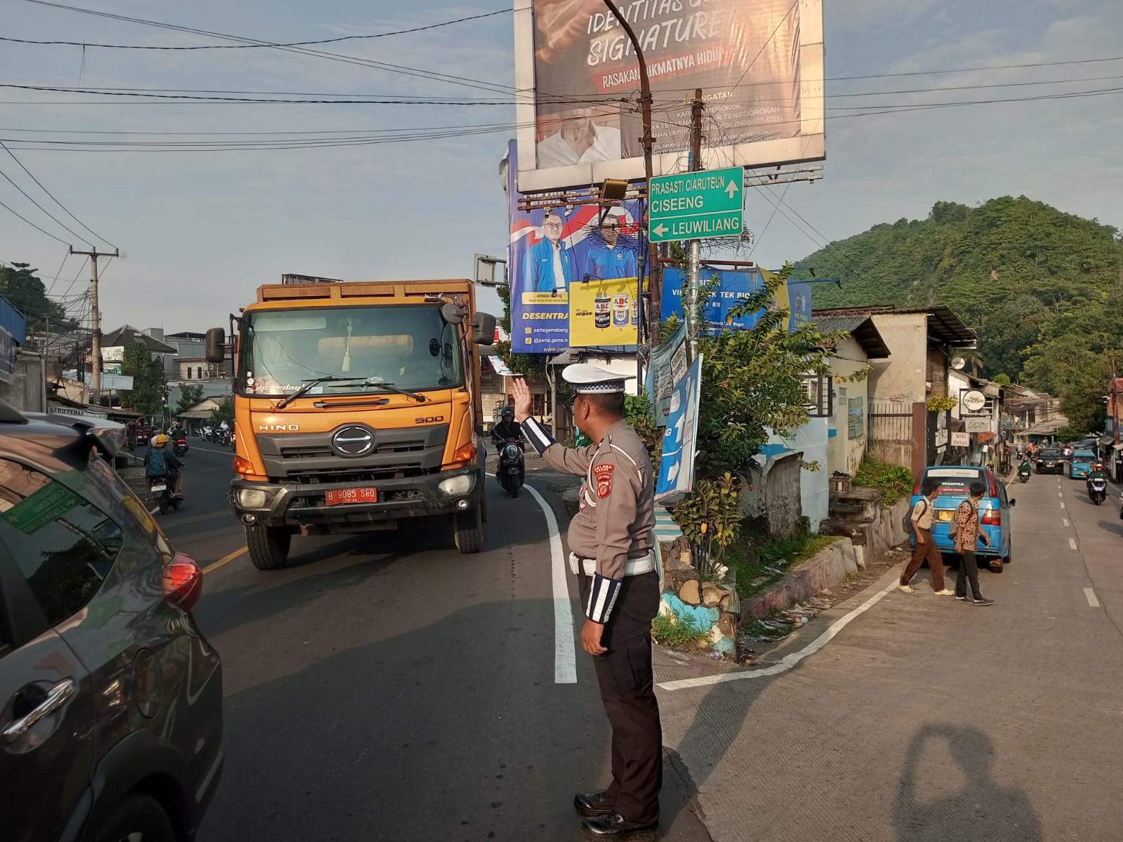 Anggota Polsek Ciampea Polres Bogor Laksanakan Pengaturan Lalu Lintas Pagi Hari, Ciptakan Rasa Aman dan Lancar di Jalan Raya