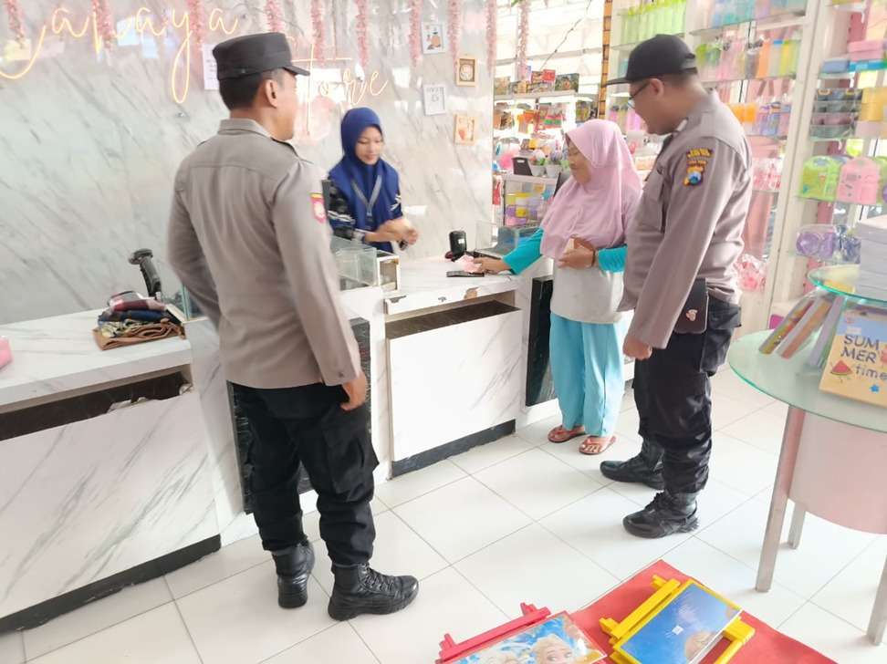 Empat personil Sat Samapta Polsek Sawahan melaksanakan Patroli dialogis di pasar Desa Kajang, di Toko Emas Desa Kajang dan pemukiman penduduk Desa Kajang, Kecamatan Sawahan, Kabupaten Madiun.