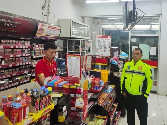 Majalengka – Dalam mencegah aksi pencurian dengan pemberatan (Curat) di minimarket, Ps. Panit Lantas Polsek Cikijing Polres Majalengka Polda Jabar, Aiptu Ade Deni H melaksanakan Patroli dan menyambangi Alfamart yang berada di wilayah Kecamatan Cikijing Kabupaten Majalengka, Senin (25/09/2023).
