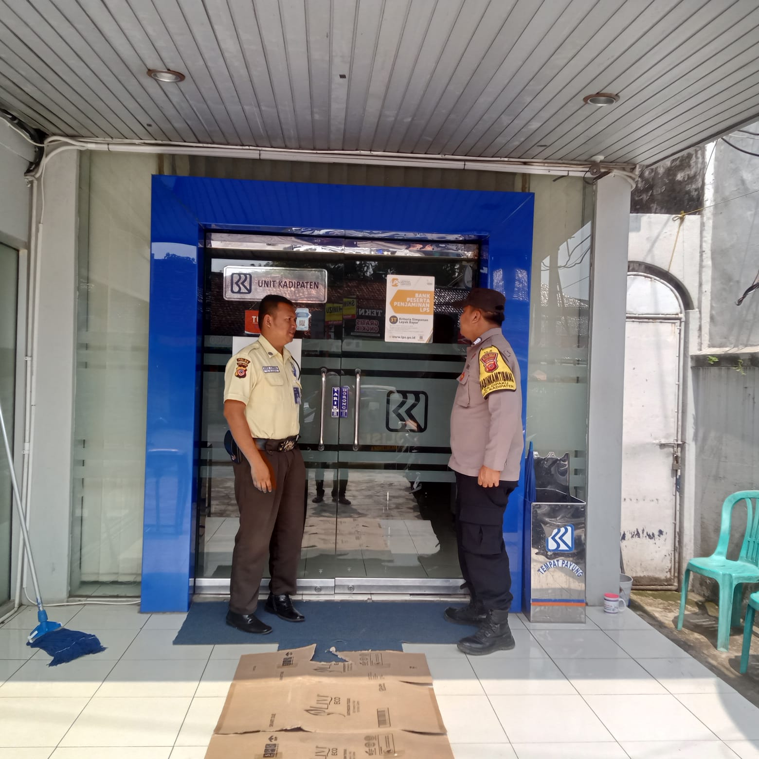 Kadipaten – Dalam rangka meningkatkan keamanan dan ketertiban masyarakat (kamtibmas), Polsek Kadipaten Polres Majalengka, Polda Jabar, terus mengintensifkan patroli siang hari. Bripka Cecep Basuki Rahmat, S.H., dan Bripka Bib Abi Musyadat kali ini menyambangi satpam Bank BRI untuk memberikan himbauan kamtibmas. Selasa (28/05/2024).