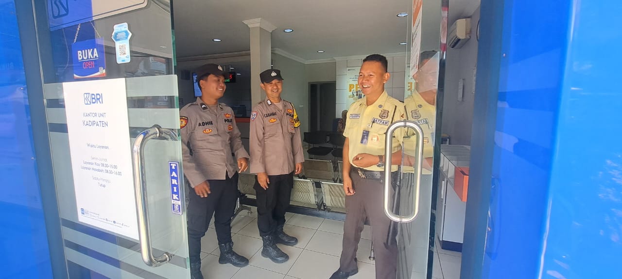 Majalengka – Personel Polsek Kadipaten Polres Majalengka Polda Jabar, Bripka Cecep Basuki Rahmat, S.H., dan Bripda Adhie Permana Ikbar, melaksanakan patroli siang ke Bank BRI Kadipaten untuk mengantisipasi gangguan kamtibmas, Senin (17/9). Patroli ini dilakukan dalam rangka meningkatkan keamanan dan mencegah potensi kejahatan di sekitar area bank. Rabu (18/09/2024).