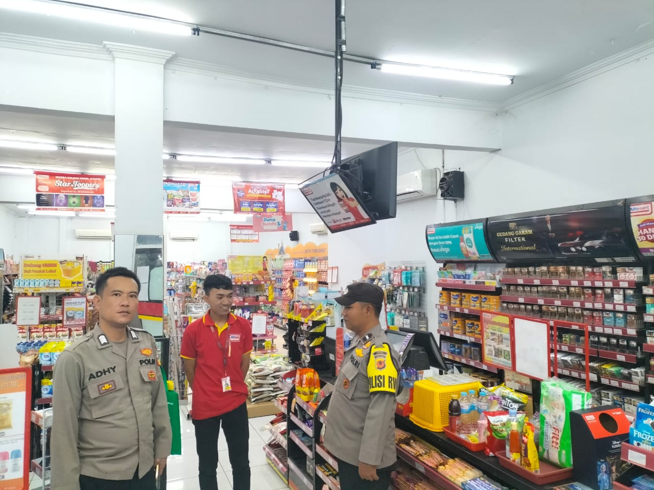 Majalengka – Dalam mencegah aksi pencurian dengan pemberatan (Curat) di minimarket, Personil Polsek Cikijing Polres Majalengka Polda Jabar, Ps. Panit Samapta l Aipda Eman Subagja dan Bripka Adhi melaksanakan Patroli dan sambangi Alfamart yang berada di wilayah Kecamatan Cikijing Kabupaten Majalengka, Minggu (13/08/2023) dini hari.