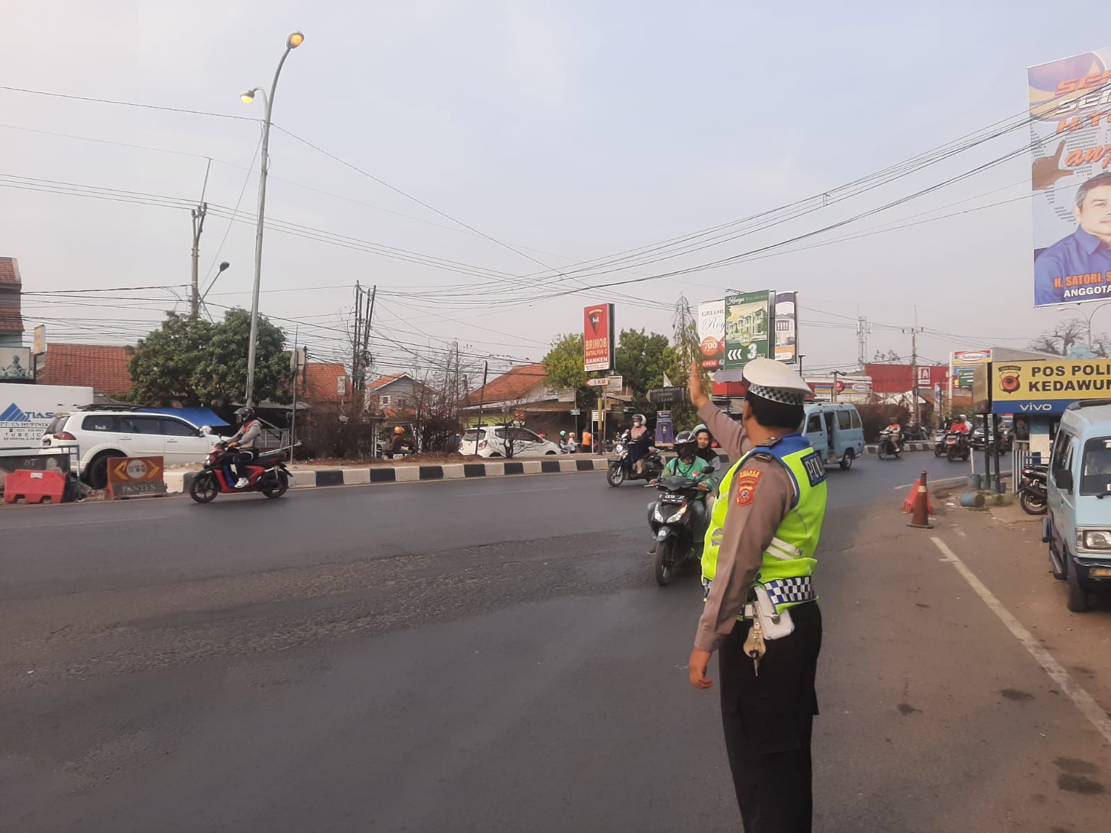 POLRES CIREBON KOTA,-Upaya pelihara kamseltibcar lantas, serta antisipasi kepadatan arus lalu lintas pada pagi hari, Personil Polsek Kedawung Polres Cirebon Kota, melaksanakan pelayanan pengaturan lalu lintas pola 6-8 di titik rawan kemacetan di wilkum polsek kedawung.