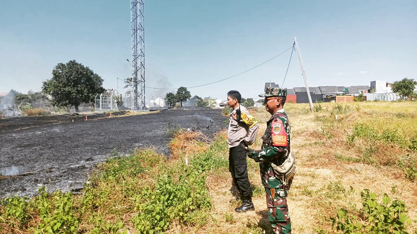 Antisipasi meluasnya api,Personel Polsek Seltim bersama Babinsa, padamkan Kebakaran Lahan Kosong
