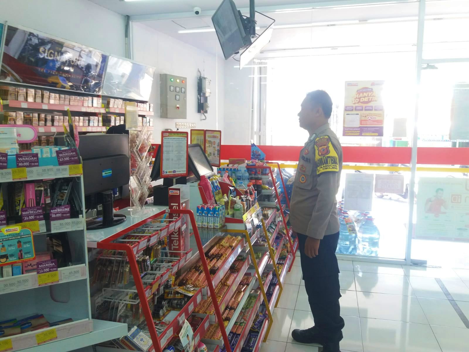 Melaksanakan patroli dan menyambangi karyawan minimarket Alfamart di Desa Cikijing untuk memberikan himbauan Kamtibmas, agar para karyawan tetap mengaktifkan kamera pengawas atau CCTV.”ujar Bripka Kurdiyanto.