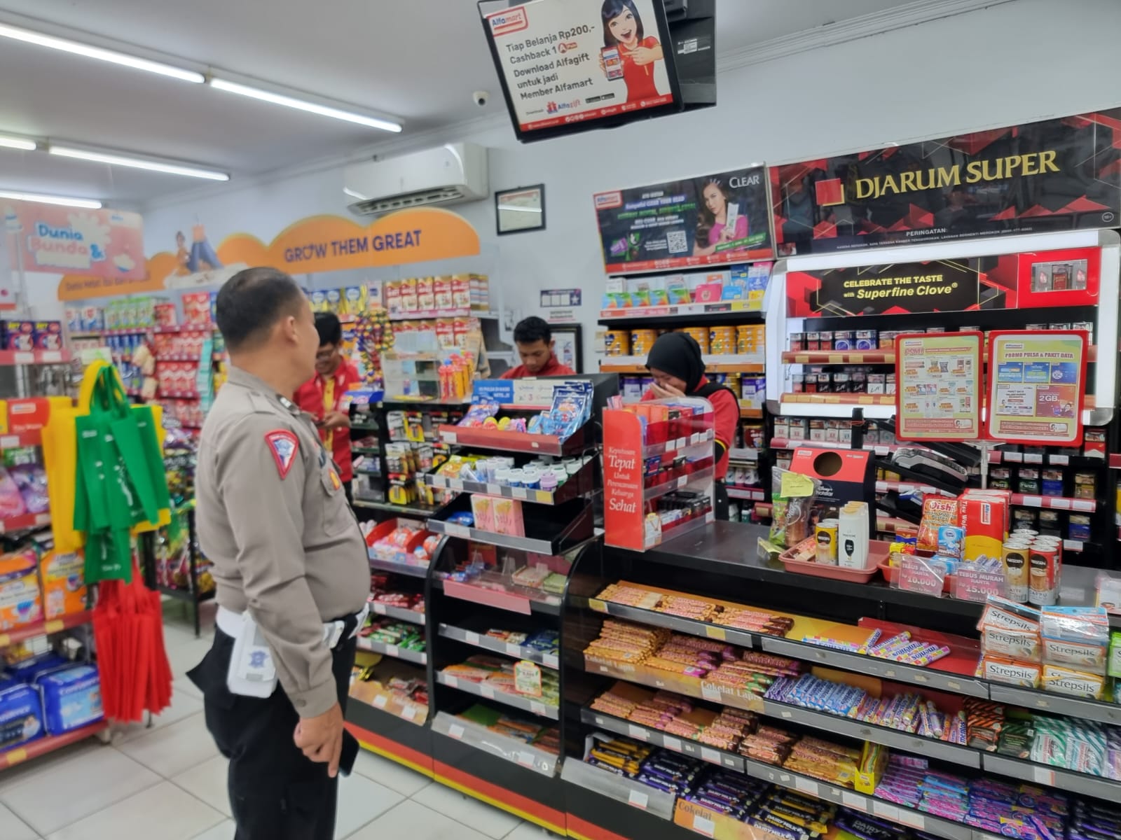 “Kami melaksanakan patroli dan menyambangi minimarket Alfamart ini bertujuan untuk memberikannya himbauan Kamtibmas dan C3 kepada karyawan Alfamart maupun para pengunjung minimarket.” ujar Aiptu Ade Deni.