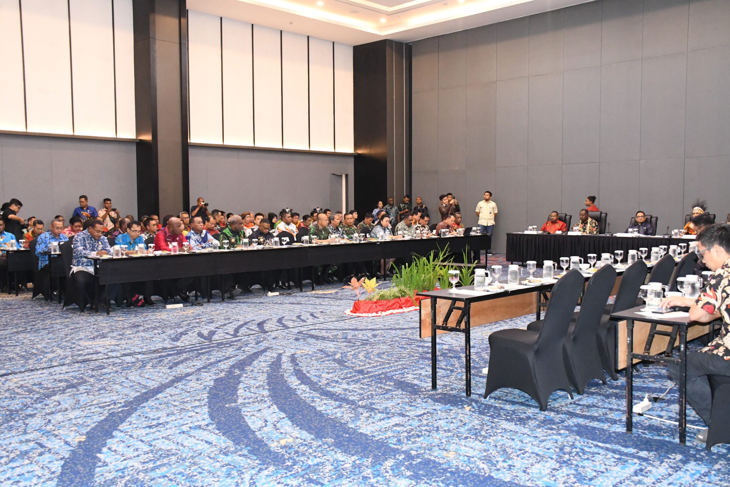 Dalam sambutannya, Gubernur Papua Barat Daya, Elisa Kambu, S.Sos., menegaskan pentingnya dukungan pemerintah pusat dalam mempercepat pembangunan infrastruktur dan pelayanan publik di provinsi baru ini. Ia menyampaikan sejumlah kendala yang dihadapi, termasuk penurunan anggaran yang cukup signifikan, dan mengusulkan agar Dana Alokasi Khusus (DAK) dapat dibuka kembali demi keberlanjutan pembangunan.