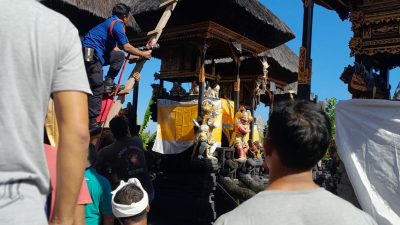 Sebuah bangunan pelinggih milik I Gede Gandhi Darmana (29) warga lingkungan Banjar Uma Kepuh, Desa Buduk, Kecamatan Mengwi, Kabupaten Badung, Bali. Pada Rabu Siang 26 Juli 2023 atapnya terbakar