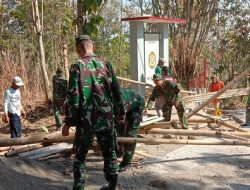 Anggota TNI Dari Satgas TMMD ke 118 dan Warga Desa Plangkrongan Bongkar Pos Kamling