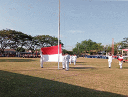 Danramil 0804/06 Maospati Sebagai Irup Dalam Upacara Penurunan Bendera Merah Putih