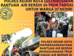Polres Kediri Kota Distribusikan Bantuan Air Bersih 20 Truk Tangki Untuk Warga di Kediri