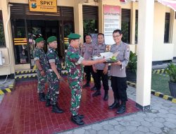 Danramil 0804/06 Maospati Bersama Anggota Datangi Polsek pada peringatan HUT Bhayangkara Ke-77