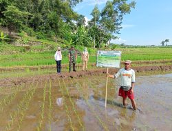 Babinsa Koramil 0804/01 Magetan Bersama Kepala Koordinator PPL Memantau Pertumbuhan Padi Dengan Sistim Tanam Jajar legowo