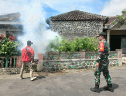 Babinsa Bogoarum Dampingi Perangkat Desa Dan Dinkes Basmi DBD, Lakukan Fogging di Desa Binaan