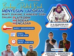 Kegiatan berbagi praktek baik untuk menyusun laporan kegiatan untuk bukti dukung e kinerja plafon merdeka mengajar di SMP1 Kedungwaru