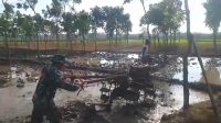 Babinsa Sugihwaras Melaksanakan Pendampingan Pengolahan Lahan untuk Persiapan Tanam Padi.