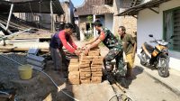 Babinsa Desa Kepet Ikut Gotong Royong Bangun Rumah Warga.