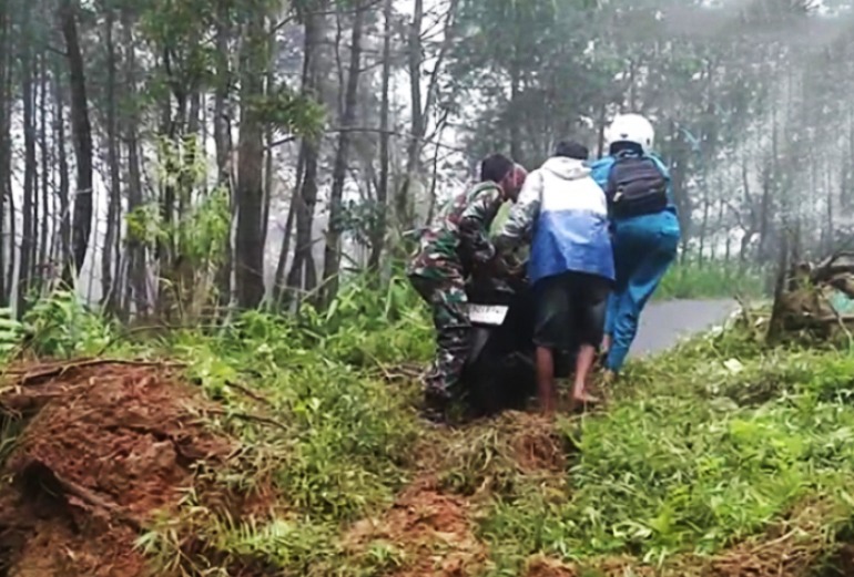 Sigap di Tengah Longsor, Babinsa Trenggalek Turun Tangan Bantu Warga