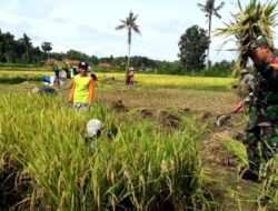 Dukung Ketahanan Pangan Nasional Babinsa Posramil 0826-12 Kadur Turun Kesawah Warga