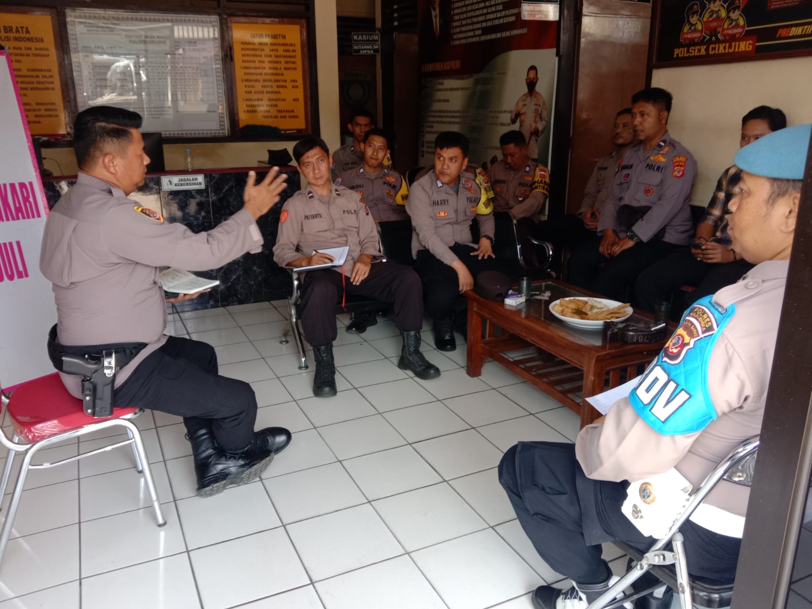Majalengka – Sesuai dengan arahan dari Kapolres Majalengka Polda Jabar AKBP Indra Novianto,S.I.K.,M.Si., CPHR., melalui Kapolsek Cikijing Polres Majalengka Polda Jabar, AKP Rudy Djunardi M, S.H., M.H. melaksanakan briefing dengan dihadiri Personil Jajaran Polsek Cikijing yang dilaksanakan di Ruang Ka SPKT Polsek Cikijing. Kamis (19/10/2023).