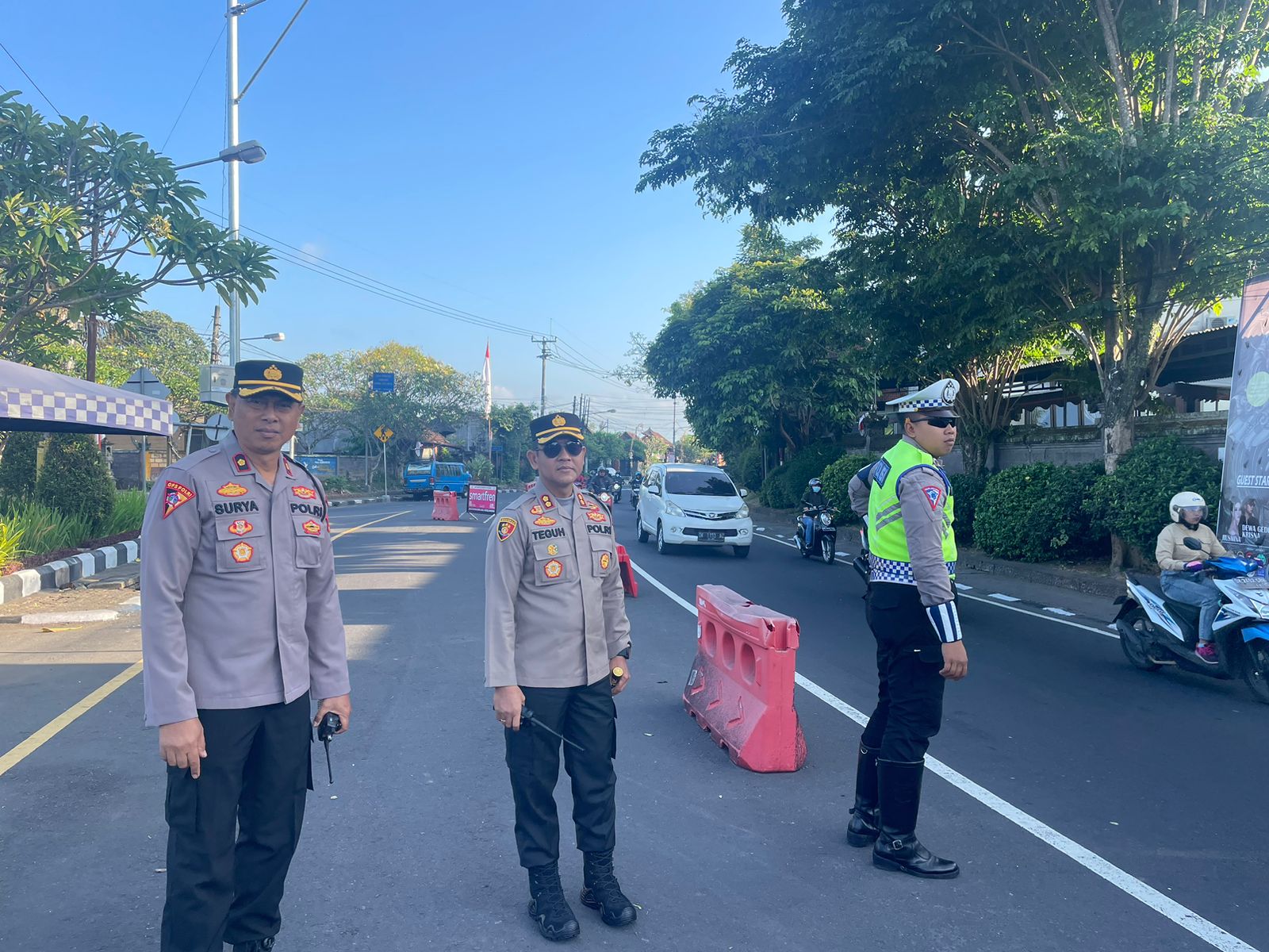 Kepala Kepolisian Resor Badung AKBP Teguh Priyo Wasono, SIK setiap hari turun kelapangan memastikan pelaksanaan PH pagi, guna pelayanan kepada masyarakat bejalan dengan baik. Kini Kapolres Badung didampingi Kabag Ops Kompol I Gede Made Surya Atmaja.P, S.Sos, MH dan Kasi Propam Iptu I Nyoman Sutanaya pantau pengaturan di Simpang Polres jalan I Gusti Ngurah Rai, Mengwi, Kabupaten Badung, Bali. Senin, (28/8/2023) pagi 07.10 WITA.
