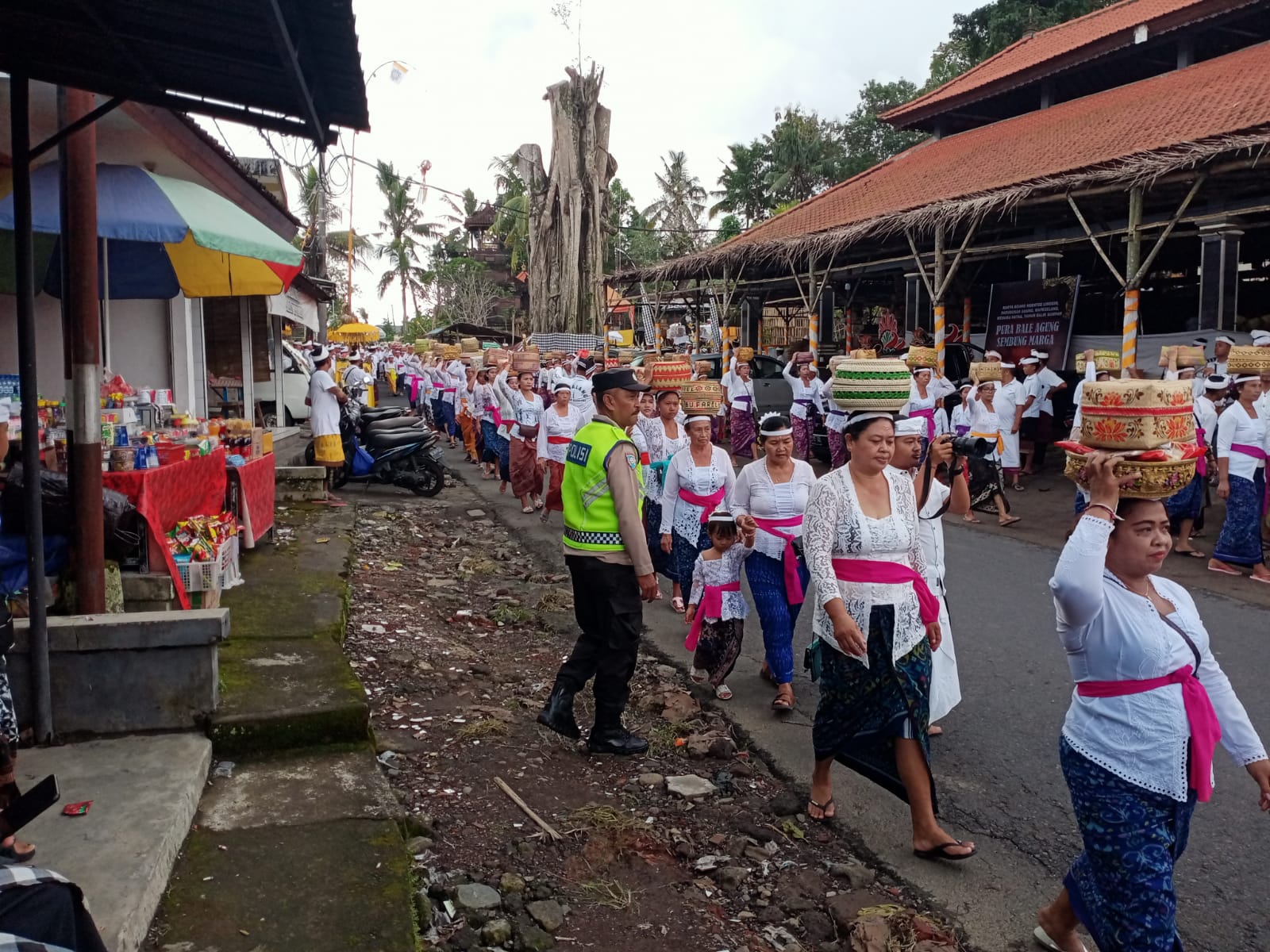 Sehubungan dengan pelaksanaan adanya rangkaian upacara Ngenteg linggih, Pedudusan Agung, Mepeselang Menawa Ratna Tawur Balik Sumpah Utama, di Pura Tri khayangan Desa Adat Tengah dan Tengah Kangin, Desa Dajan Puri Kecamatan Marga, Kabupaten Tabanan, yang akan dilaksanakan pada hari Buda/Rabu Umanis Julungwangi 19 Juli 2023. Bhabinkamtibmas Desa Dajan Puri Aiptu I Wayan Wantera selalu melakukan atensi terhadap berbagai rangkaian kegiatan yang dilaksanakan dalam rangka upacara tersebut. Seperti pada hari Minggu tanggal 9 Juli 2023 bhabinkamtibmas Desa Dajan Puri melakukan pengamanan terhadap kegiatan “Mendak Sesuwunan Tri khayangan Pura Dalem lan Pura Puseh Geluntung diantar ( kehiring ) ke Pura Bale Agung Sembung, Desa Marga Dajan Puri Kecamatan Marga Kabupaten Tabanan.