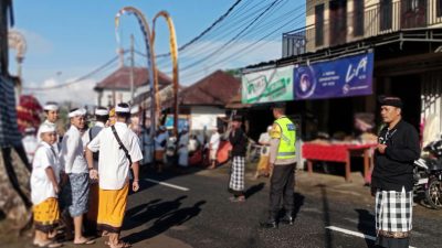 Ngenteg linggih, Pedudusan Agung, Mepeselang Menawa Ratna Tawur Balik Sumpah Utama, Bhabinkamtibmas Desa Marga Dajan Puri bersinergi dengan pecalang Desa adat bersama sama, melakukan pengamanan dan pengaturan arus lalu lintas di jalur yang dilalui peserta upacara “Mendak sasuhunan /Ida Betara Pura Tri Khayangan”. Jelas Kapolsek Marga.