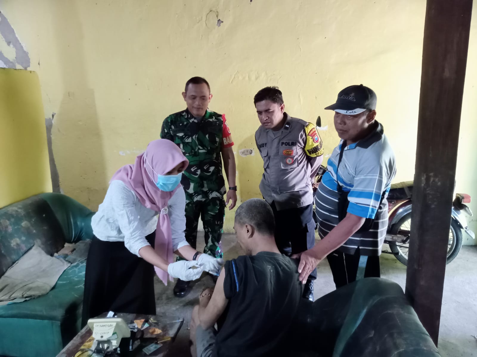 Madiun – Babinsa Desa Singgahan Koramil 13/Kebonsari, Kodim 0803/Madiun, Sertu Handik Handoko bersama Bhabinkamtibmas, Bidan dan Perangkat Desa melaksanakan kegiatan pemeriksaan kesehatan bagi Orang Dengan Gangguan Jiwa (ODGJ) di Desa Singgahan, Kecamatan Kebonsari, Kabupaten Madiun, Selasa (16/1/2024).