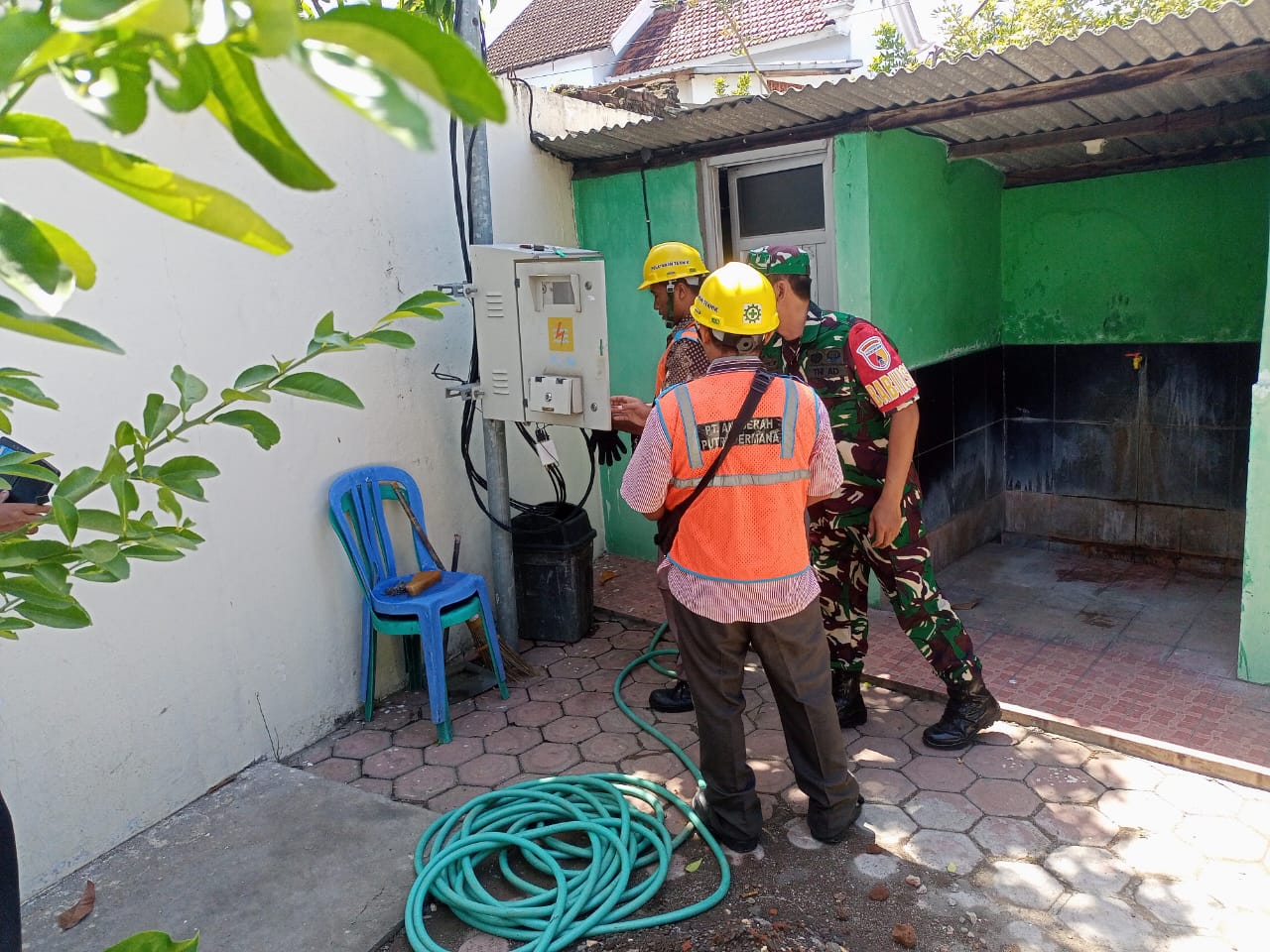 Madiun – Babinsa Koramil 02/Madiun, Kodim 0803/Madiun, Sertu Sutoyo mendampingi petugas PLN melakukan pengecekan transformator (travo) listrik di Dusun Jogobayan Rt 03 Rw 01 Desa Tiron, Kecamatan Madiun, Kabupaten Madiun, Senin (22/1/2024).