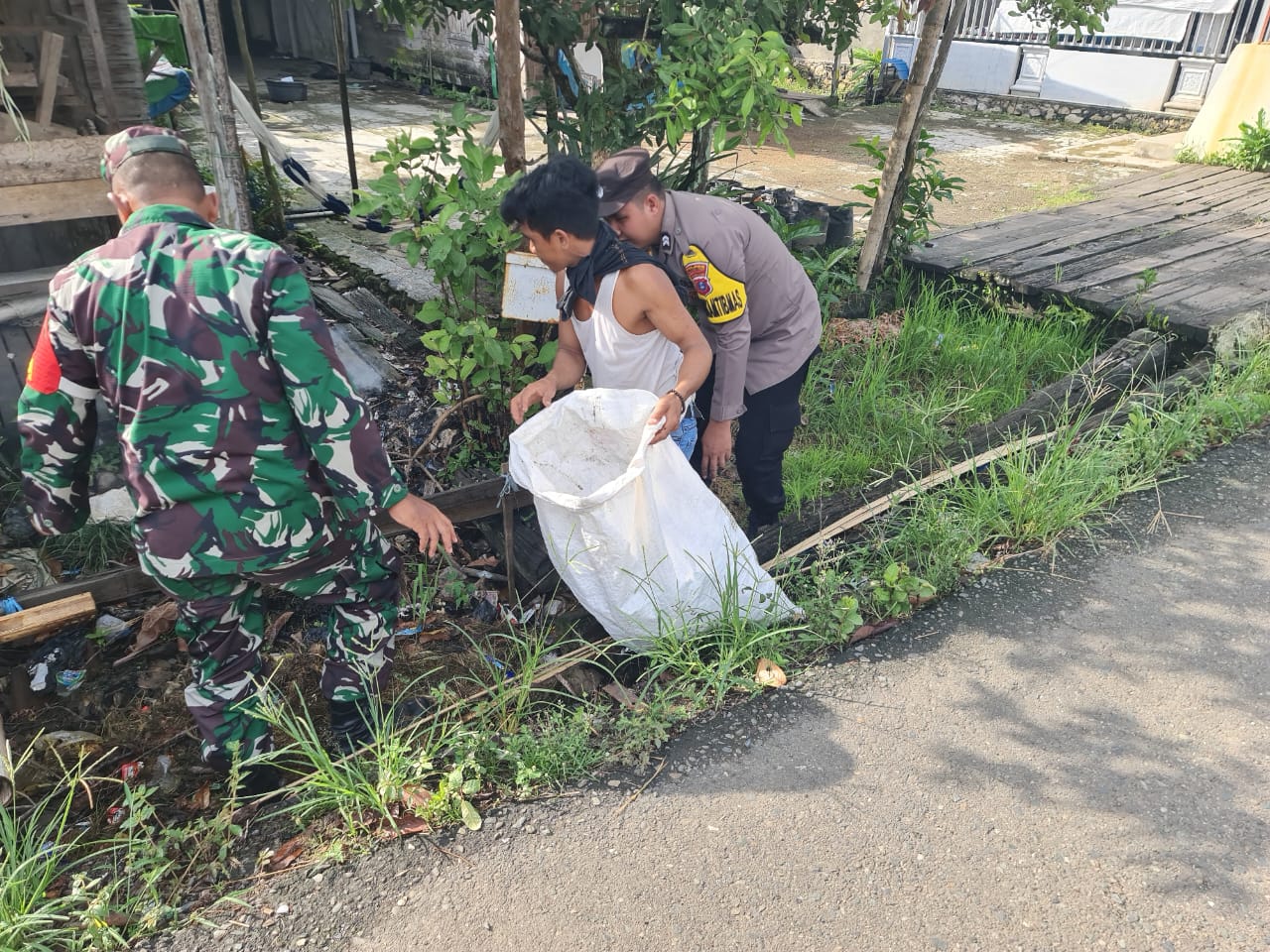 Serka Supriadi menyampaikan bahwa kegiatan ini merupakan bentuk sinergi antara TNI, Polri, dan masyarakat dalam menjaga kebersihan lingkungan.