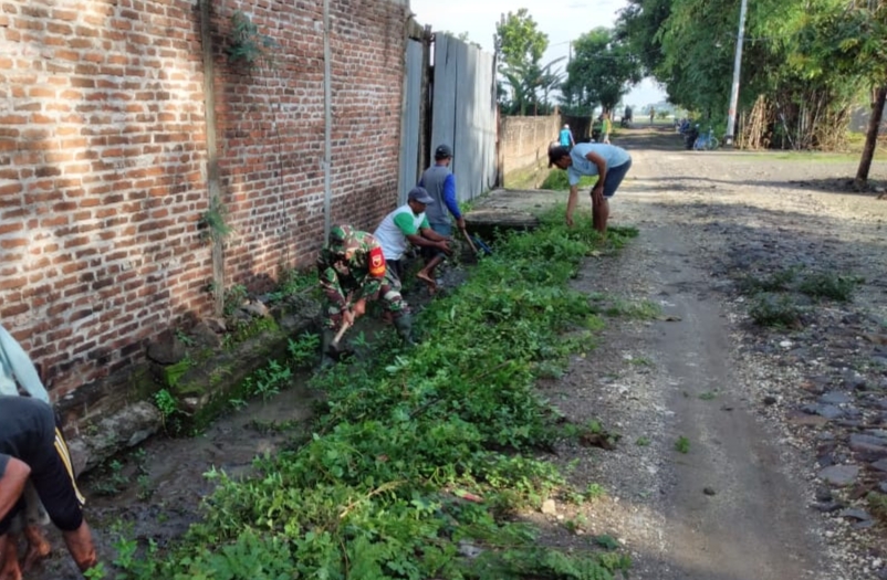 Babinsa Desa Kedungrejo Bersinergi dengan Warga Gelar Kerja Bakti Bersihkan Selokan