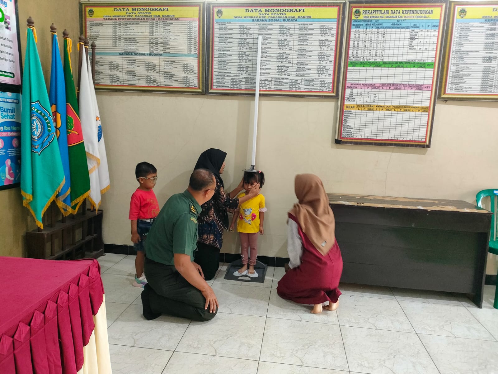 Madiun, 31 Juli 2024 – Dalam upaya mendukung program kesehatan masyarakat, Pelda Nuryadi, anggota Babinsa Desa Mendak dari Koramil 0803/14 Dagangan, melaksanakan kegiatan pendampingan Posyandu bertempat di Aula Kantor Desa Mendak, Kecamatan Dagangan, Kabupaten Madiun. Kegiatan ini dilaksanakan pada hari Rabu, 31 Juli 2024.
